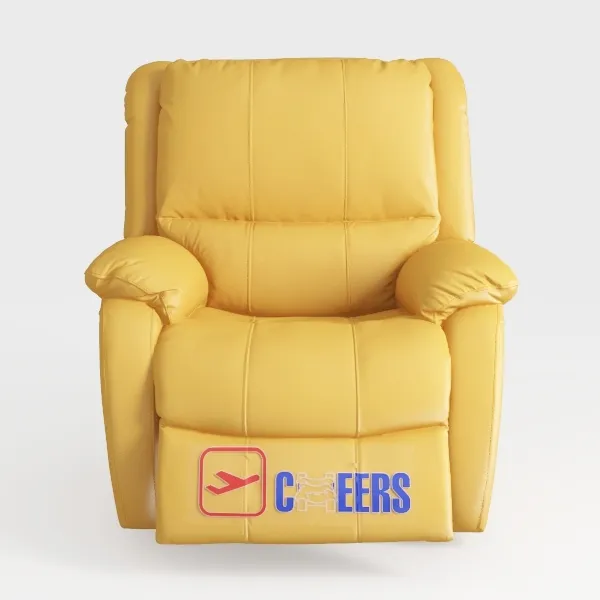 This comfortable yellow recliner chair features plush cushioning and faux leather details, designed with 1692027 polygons for a modern living room or lounge area.