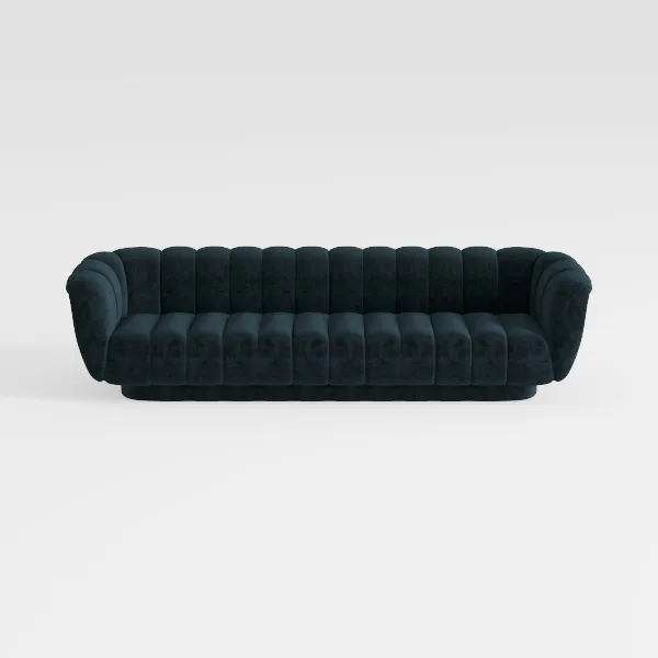 Beyond its striking looks, the sofa prioritizes comfort: the generously deep seat and curved, contoured back cradle the body, while the soft yet supportive padding ensures long hours of relaxation. Its streamlined silhouette maximizes seating space without overwhelming the room, proving style and functionality can coexist seamlessly.