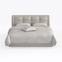 Inspired by minimalist Scandinavian design, this bed features soft, tufted upholstery with clean lines. Its plush texture and light gray hue create a serene, inviting atmosphere. The spacious headboard offers gentle back support, ideal for a calm, modern bedroom. Pair with wooden nightstands and neutral-toned walls for a cohesive, sophisticated look.
