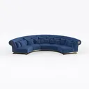 This stunning curved sofa draws inspiration from contemporary design, seamlessly blending luxurious comfort with artistic elegance. Its deep navy upholstery, complemented by subtle quilting, radiates a sense of sophistication while providing a vibrant pop of color to any living space. The smooth touch of the fabric invites relaxation, while the plush cushions offer unparalleled support, making it a perfect spot for lounging or entertaining guests.