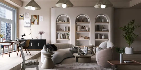 This living room arrangement takes cues from nature’s most fluid forms—think the gentle arc of a cloud or the smooth contour of a river stone—crafting a design that feels both organic and intentional. The upholstered pieces, from the sinuous sofa to the rounded armchair, are wrapped in a buttery-soft, textured fabric that invites touch, with a palette of warm neutrals (whispering whites and soft greys) that bounces light, creating a serene, airy vibe. The lack of sharp angles and the play of soft curves make the space feel warm and approachable, as if each piece has been shaped by hand to cradle rather than constrain.