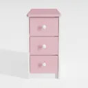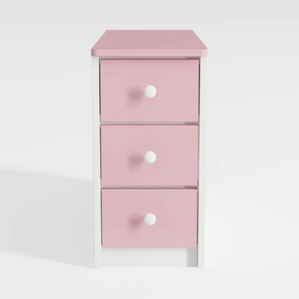 Inspired by soft, warm aesthetics, this piece features smooth, matte pink drawers with crisp white frames, adding a fresh, clean look. Perfect for a cozy, pastel-themed bedroom, it pairs beautifully with soft linen beddings and vintage-inspired decor, while three spacious drawers offer ample storage, blending style and practicality seamlessly.