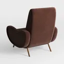 The design of this armchair takes cues from organic, flowing natural forms, with soft, curved lines that mimic the gentle contours of a seashell or a bird’s outstretched wing. The warm, deep brown upholstery feels surprisingly tactile—like a buttery suede or velvet—inviting a sense of cozy relaxation at first touch. Visually, its smooth, unbroken surfaces create a calm, cohesive look, while the fabric’s subtle texture catches light softly, adding depth without overwhelming the eye.