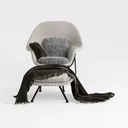 Inspired by flowing natural forms, this armchair blends softness with stability. Its light gray textured fabric feels plush and warm, while the deep brown fringed throw adds a cozy, earthy contrast, crafting a visually balanced, inviting vibe. Ideal for a modern minimalist or Scandinavian-inspired living room, it pairs beautifully with wooden side tables and warm-toned rugs, enhancing the space’s warmth. The wide, contoured seat offers excellent support, and sleek black metal legs ensure sturdiness while keeping the design light and airy.