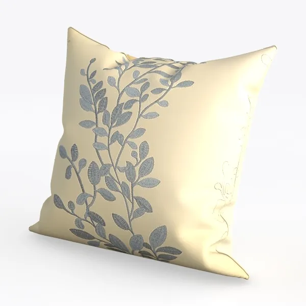A 3D model of a Pillow, featuring textured woven pattern in earthy yellow and a handcrafted aesthetic. It has low-poly structure and is suitable for home decor.