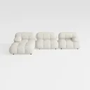 Blending organic softness with contemporary minimalism, this modular sofa takes cues from the gentle, sculptural forms of nature—think puffy clouds or handcrafted textile art—reimagined to fit seamlessly into modern living. Its off-white upholstery, with subtle, intentional tufting and a plush, pillowy texture, invites immediate tactile connection: running fingers over the surface reveals a satisfying blend of softness and structure, as each section nestles into the next, creating a cohesive yet dynamic silhouette that feels both intentional and effortless.