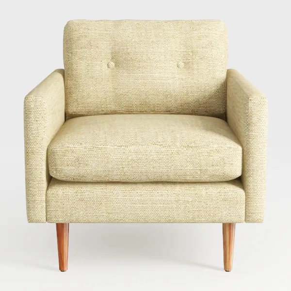 Inspired by mid-century design, this chic armchair is a harmonious blend of comfort and style. The soft, textured fabric envelops you in a warm embrace, while the gentle curves of the upholstery invite relaxation. Its neutral hue adds a touch of sophistication, making it a versatile addition to any living space.