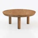 Drawing inspiration from organic simplicity, this wooden coffee table features a warm, smooth surface with rich grain patterns, blending natural warmth and subtle texture. Its soft, earthy tone creates a calm, inviting atmosphere. Perfect for minimalist or Scandinavian living rooms, pair it with a linen sofa and potted plants. Sturdy cylindrical legs ensure stability, while the rounded shape adds space efficiency, ideal for small or open layouts.