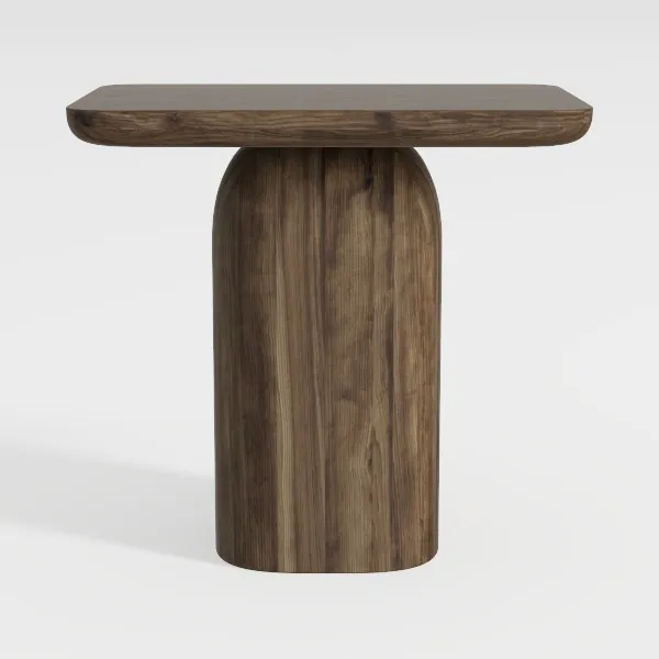 Inspired by organic minimalism, the design blends smooth, curved lines with rich wood grain. The warm, matte surface exudes natural warmth, with visible wood grain adding texture and depth. Perfect for modern living rooms or entryways, it pairs beautifully with sleek sofas, marble accents, and potted greenery. A sturdy, compact base supports a spacious top, ideal for placing lamps, decor, or daily essentials with ease.