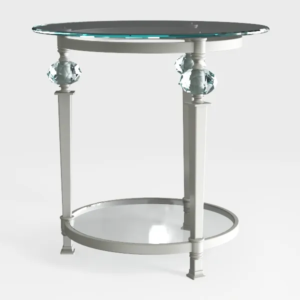 Inspired by natural gemstones and classic craftsmanship, this elegant side table features a smooth, transparent glass top and lower shelf, creating a light, airy feel. The crystal-like decorative elements on its metal frame add subtle sparkle, enhancing its sophisticated look. Ideal for modern-luxury spaces, it pairs well with velvet sofas and marble accents. The lower shelf provides handy storage for books or decor, balancing style and practicality.