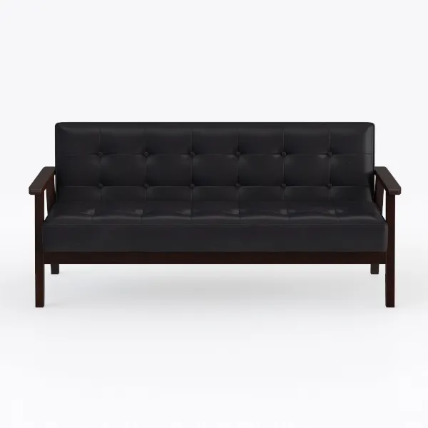 AODAILIHB Modern Wooden Leather 2-Seat Sofa, Sleek Minimalist Loveseat, Sturdy and Long-Lasting Loveseat Sofa Couch, Home Office Furniture (Black)