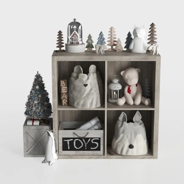 Inspired by nature and cozy family warmth, this wooden shelf blends warm, textured wood with soft fabric toys and clear glass elements, creating a gentle, inviting vibe. Its open compartments neatly organize toys, while the light, airy design suits a child’s room, pairing Scandinavian simplicity with playful charm.