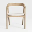 Inspired by Scandinavian design, blending organic elements for a warm, natural vibe. Light oak wood with a smooth, matte finish offers a warm touch, soft beige upholstery adds gentle comfort. Clean, curved lines create an elegant silhouette, ideal for minimalist living rooms or cozy studies, pairing well with marble side tables and linen curtains. A slightly elevated seat height and firm back support ensure long-lasting comfort during reading or relaxation.