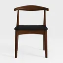 This contemporary chair features a curved dark wood frame, black seat, and 59594 polygons, perfect for a modern dining area or sophisticated living room.