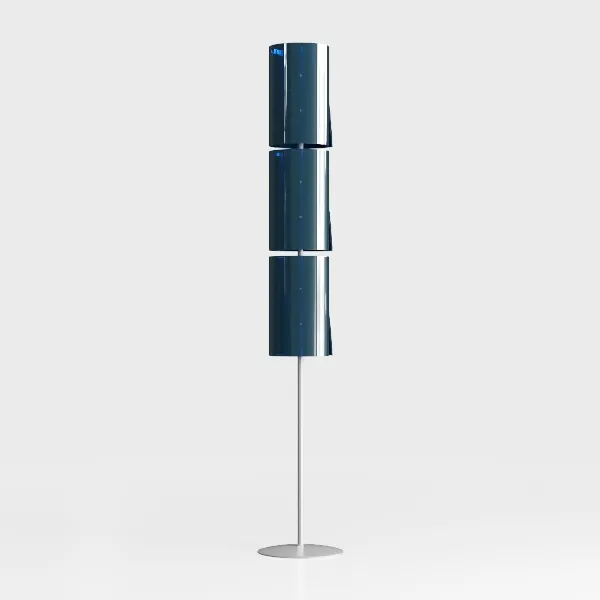 A 3D model of a Floor Lamp, featuring three cylindrical shades, metallic stand, and a modern minimalist aesthetic. It has low polygon count and stable base, suitable for home decor in living rooms or bedrooms.