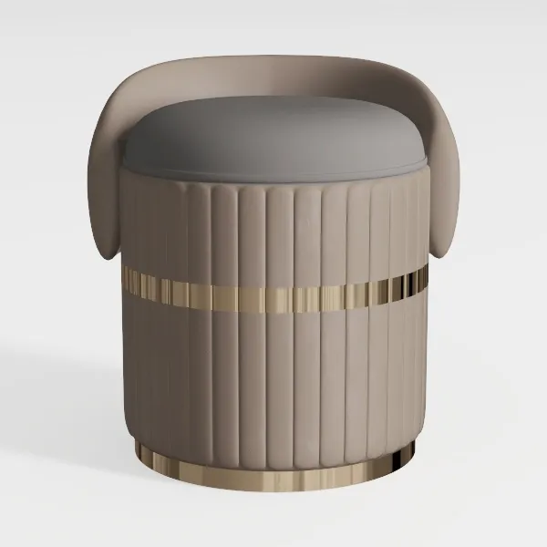 Inspired by architectural lines and modern minimalism, soft, textured upholstery with vertical ridges offers a warm tactile feel, while gold bands add subtle luxury. Ideal for modern-luxe living rooms or bedrooms, pair with marble and metallic accents. Compact, sturdy, and plush, it supports cozy lounging, blending style and function seamlessly.