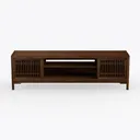 This TV cabinet features a dark wood construction with intricate slatted doors, perfect for a living room and designed with an Asian-inspired style, totaling 1203 polygons.