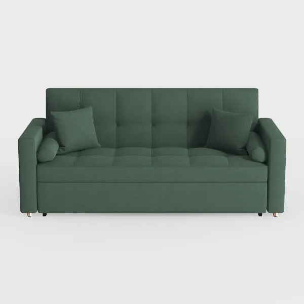 This elegant sofa draws inspiration from contemporary design principles, marrying minimalist aesthetics with functional comfort. Upholstered in a rich, deep green fabric, it exudes a sense of tranquility and sophistication, making it a standout piece in any living space. The subtle texture of the fabric invites touch, while the plush seating offers an inviting haven for relaxation.