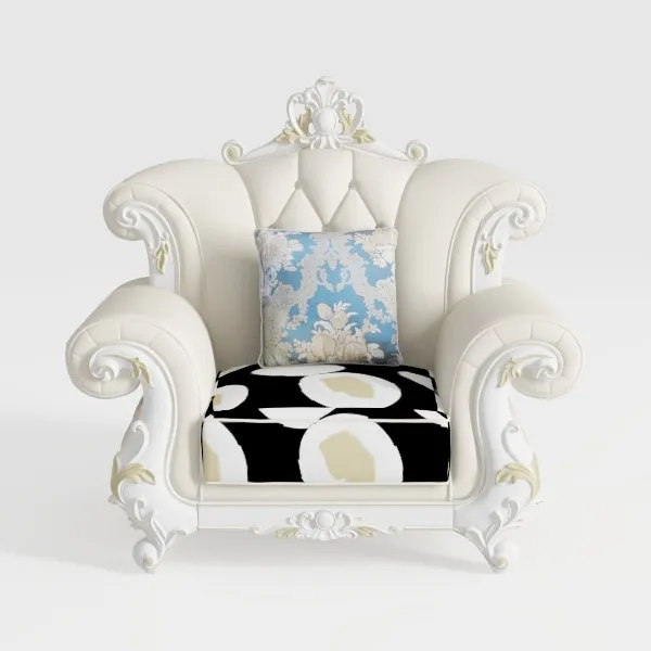 This elegant armchair draws inspiration from 18th-century classical furniture, blending the grandeur of royal upholstery with contemporary minimalism. Its frame is crafted with smooth, creamy-white upholstery that feels buttery-soft to the touch, while intricate carved scrollwork adorns the armrests and base, adding a touch of old-world opulence. The high back features a diamond-tufted design, creating a visually striking texture that elevates the chair’s sophistication.