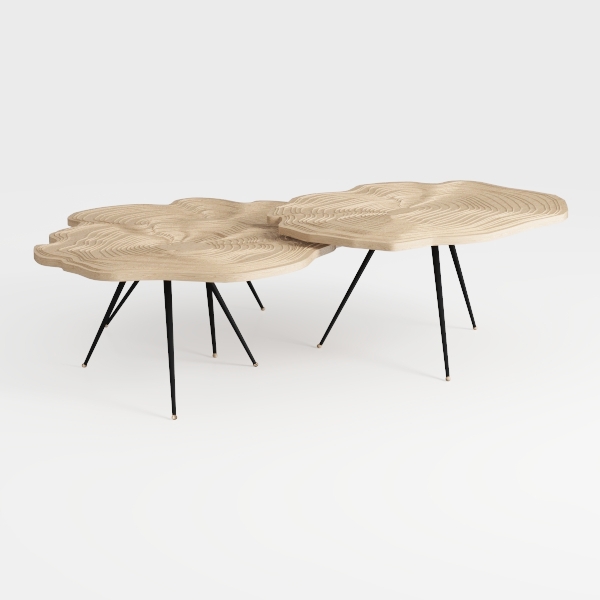 Crafted with organic inspiration drawn from the fluid movement of natural elements—think the soft undulations of a cloud or the gentle curve of a river’s edge—this set of tables embodies a serene fusion of nature and modern minimalism. The light, warm-toned wooden tops feature intricate, wave-like grain patterns that catch and reflect light subtly, creating a dynamic interplay of shadows and highlights. Their surface is smooth to the touch, with a温润, tactile quality that feels both grounded and inviting, while the natural wood’s unique knots and lines add character, making each piece one-of-a-kind.