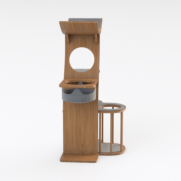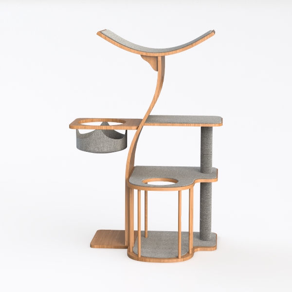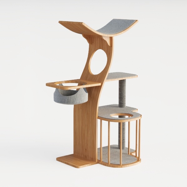 Inspired by the natural instinct of cats to seek elevated resting spots, this piece blends the warmth of organic design with modern functionality. Crafted from carefully selected solid wood, its surface showcases subtle grain patterns that highlight the material’s inherent beauty, while the smooth, sanded finish offers a gentle, inviting touch. The soft gray upholstery wraps around the cozy nesting areas, balancing the sturdiness of wood with a plush, tactile appeal—perfect for cats to curl up or nap, and comfortable for human hands to brush against.