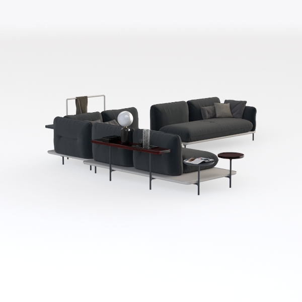 Inspired by modern minimalist aesthetics, this spacious sectional sofa combines sleek lines with plush comfort, making it a perfect centerpiece for any contemporary living space. The upholstery features a rich, dark tone that evokes sophistication, while its soft texture invites relaxation. The subtle sheen of the fabric enhances the overall ambiance, creating a welcoming atmosphere.