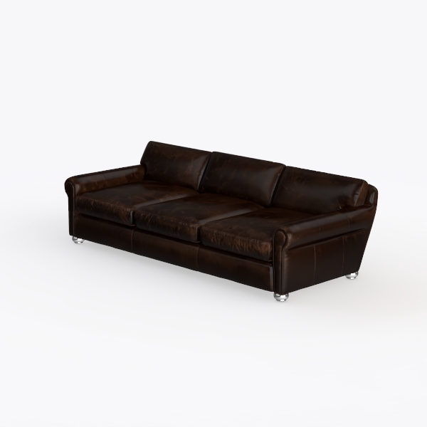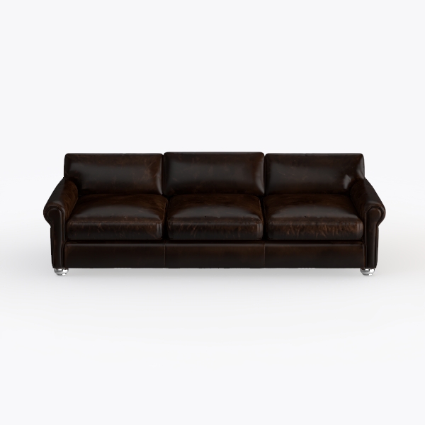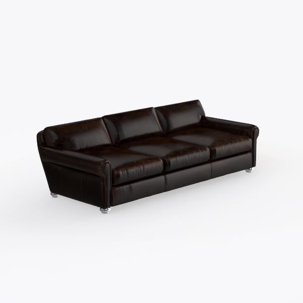 This exquisite sofa is the epitome of sophistication, drawing its design inspiration from classic European elegance. The rich, dark leather offers a sumptuous look and a soft touch that invites relaxation. Its smooth surface reflects light beautifully, enhancing the overall aesthetic of any living space.