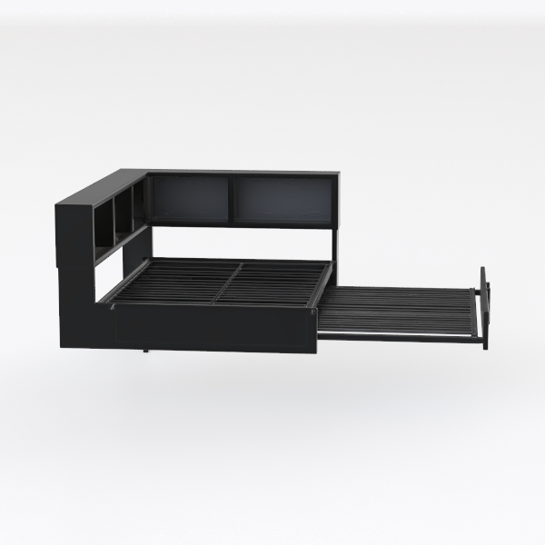 Metal Full Size Daybed with Trundle, Storage Cabinets and USB Ports, Black