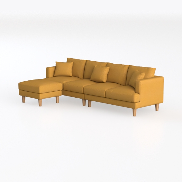Introducing a stunning piece of furniture that embodies both style and comfort, this sectional sofa draws inspiration from contemporary designs, blending functionality with aesthetic appeal. The rich mustard hue of the upholstery radiates warmth, inviting you to sink into its embrace. Its soft texture provides a cozy touch, while the plush cushions ensure a luxurious seating experience.