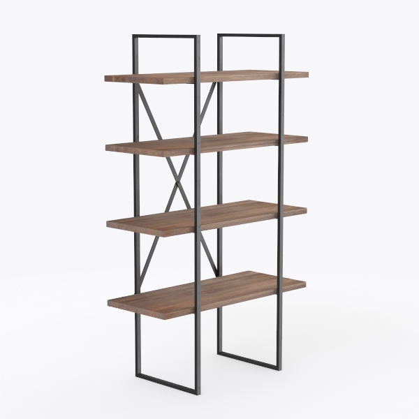 Inspired by the fusion of industrial durability and organic warmth, this shelving piece marries rustic charm with modern simplicity. The four solid wood shelves, crafted from rich, medium-toned timber, reveal subtle grain patterns—soft swirls and natural knots that add tactile depth, inviting a gentle touch. Contrasting this, the frame is forged from matte black metal, its angular X-shaped crossbars not only ensuring steady support but also introducing a sleek, contemporary edge. Visually, it strikes a balanced harmony: the light wood shelves complement the dark metal frame, while the open design keeps the piece airy, never overwhelming a space.