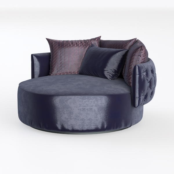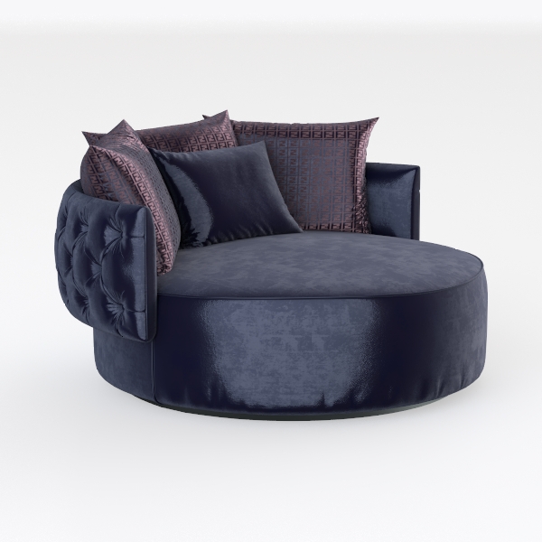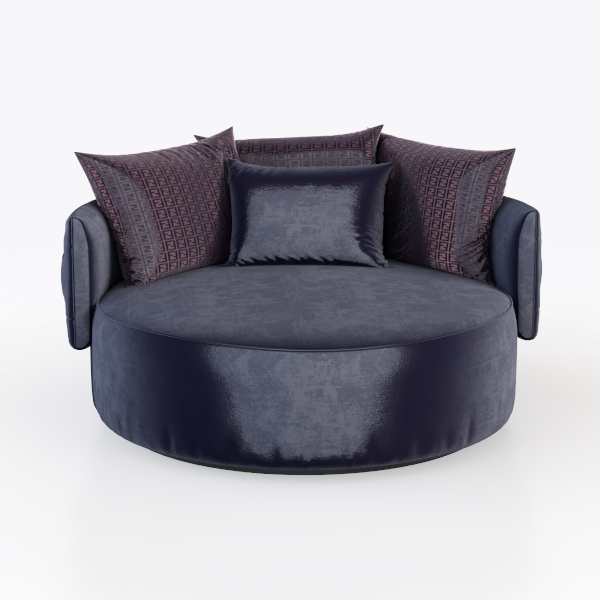 Introducing a luxurious round sofa that combines elegance with unparalleled comfort. Inspired by modern design trends, this piece features a rich navy upholstery that exudes sophistication, while the plush texture invites relaxation. Its soft, velvety surface provides a sumptuous feel, making it an inviting spot for lounging or entertaining.