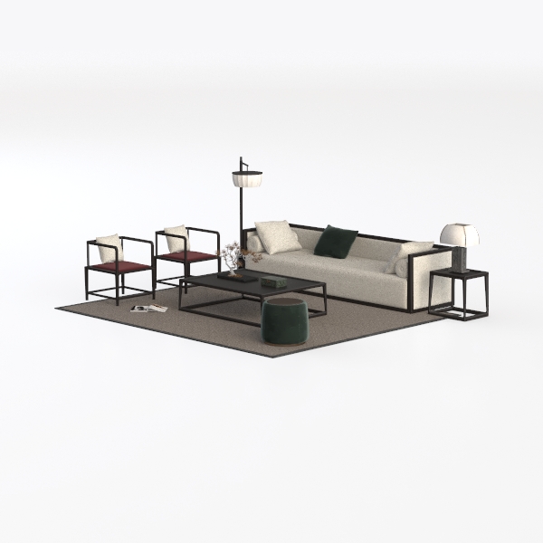 This exquisite living room setting exudes a sense of modern elegance, drawing inspiration from contemporary minimalism. The sofa's soft fabric invites you to sink into its plush contours, while the rich textures of the accent cushions provide a striking contrast, enhancing the overall tactile experience. The sophisticated play of colors—cream, deep green, and burgundy—creates a harmonious palette that brings warmth and depth to any space.