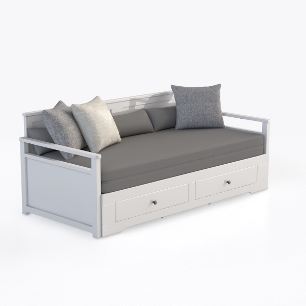 Inspired by a blend of minimalist design and functionality, this piece embodies a contemporary aesthetic while offering cozy comfort. Its sleek silhouette, finished in a crisp white, creates a fresh and airy feel, making it an ideal addition to any modern space. The soft gray cushions invite relaxation, providing not only visual appeal but also a sumptuous touch that enhances the sensory experience.