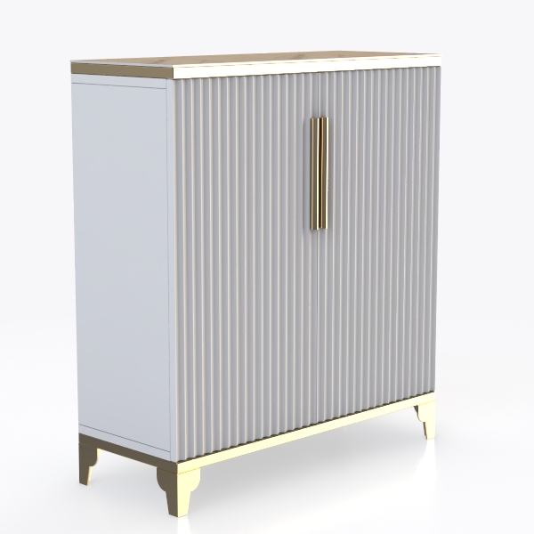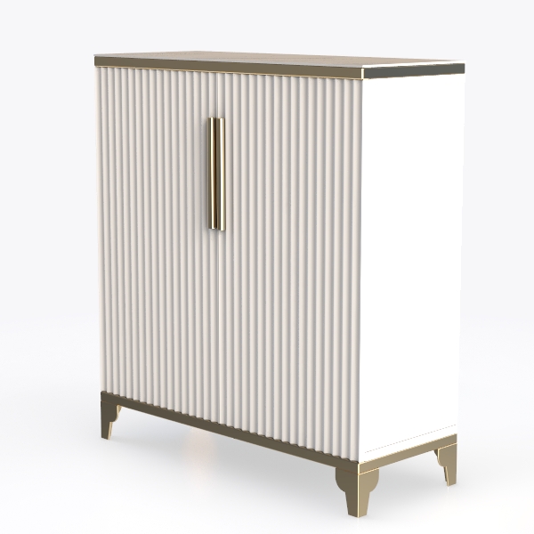 Perfect for a modern-luxury living room, it pairs effortlessly with marble-topped side tables and brass floor lamps, or as a dining room sideboard to showcase curated table settings. In a bedroom, it doubles as a vanity console or a linen closet, its vertical ribs creating a visually elongating effect that makes smaller spaces feel more open. Inside, the double-door design reveals a surprisingly spacious interior, with adjustable shelves to adapt to storage needs—whether stashing cookbooks, decor, or daily essentials.