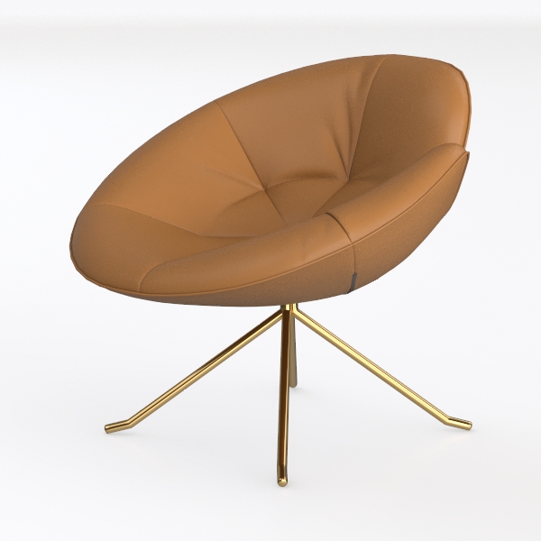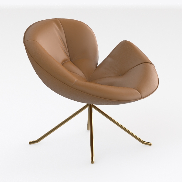 This lounge chair takes cues from the fluid lines of natural forms, with its soft, rounded silhouette evoking the gentle curve of a seashell or a crescent moon. The warm camel leather upholstery feels buttery to the touch, its supple texture creating a tactile contrast to the chair’s airy, open design. The rich, earthy hue of the leather infuses the space with warmth, while the sleek gold-tone metal legs—arranged in a delicate X-shape—add a touch of modern sophistication, balancing softness with subtle elegance.