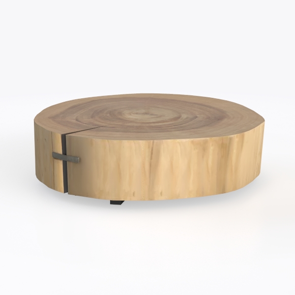 Inspired by the organic rhythm of nature, this circular coffee table draws from the timeless beauty of tree stumps, reimagined through a modern lens. Its design marries raw natural elements with subtle industrial touches, creating a piece that feels both rooted in the earth and contemporary.
