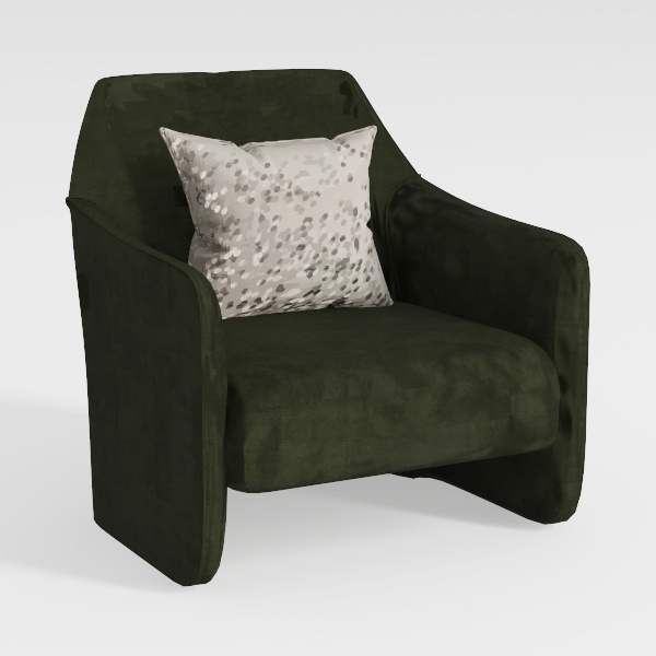 Inspired by contemporary design trends, this armchair showcases a rich, earthy green hue that seamlessly blends with various interior styles. Its soft fabric invites you to indulge in comfort, while the smooth, clean lines create an aesthetic that is both modern and inviting. The plush cushion, adorned with a subtly patterned pillow, not only enhances the chair's visual appeal but also adds a layer of texture that is pleasant to the touch.
