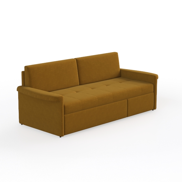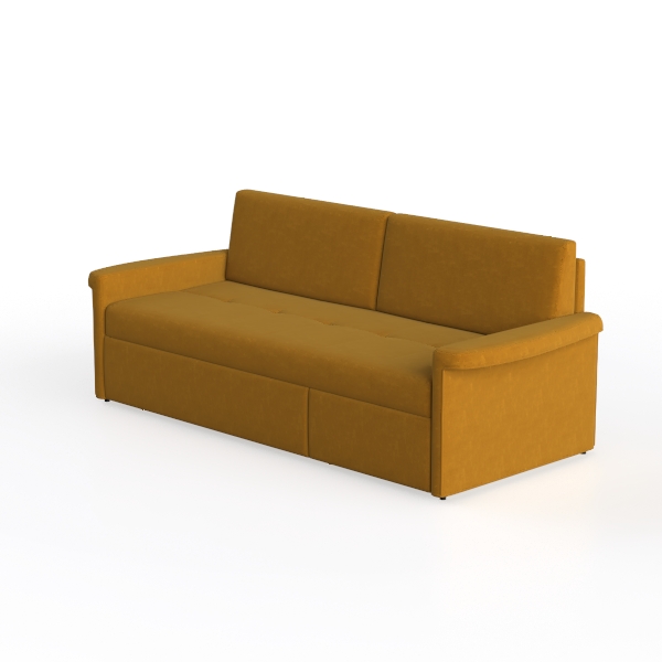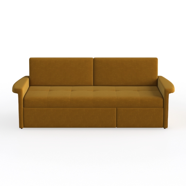 This stylish sofa embodies a modern and minimalist design, making it the perfect centerpiece for any contemporary living space. Its warm mustard hue adds a touch of vibrancy, while the soft, textured fabric invites you to sink in and unwind. The clean lines and understated elegance of this piece create an inviting atmosphere, ideal for both cozy family gatherings and chic entertaining.