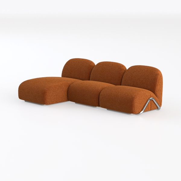 Perfect for a contemporary living room, this design works beautifully when paired with minimalist side tables and eclectic artwork, enhancing the overall style. The blocky yet rounded shapes create a playful contrast against sharper furniture elements, while the warmth of the color adds an element of earthiness.