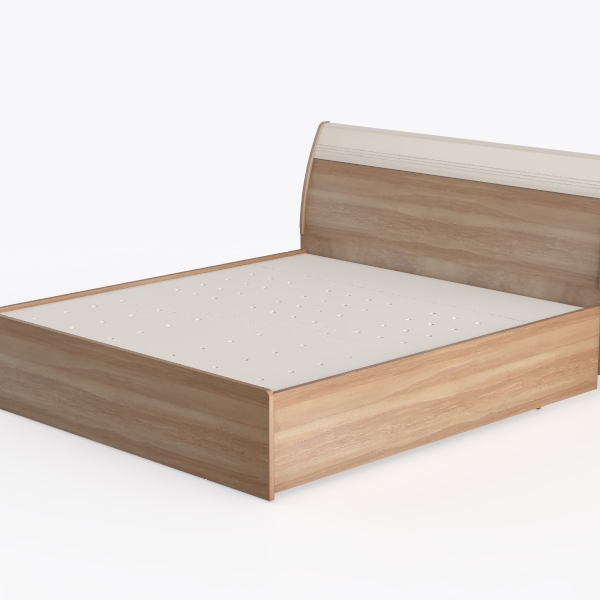 This piece draws inspiration from the quiet elegance of natural minimalism, merging organic warmth with modern practicality. Crafted from light, smooth wood with soft, visible grain patterns, the bed frame exudes a tactile richness—cool to the touch yet inviting, as if brought to life by nature’s subtle artistry. The low-profile headboard, upholstered in a warm, neutral fabric, curves gently to cradle the back, balancing sturdiness with a comforting softness that feels like a gentle embrace. Visually, its clean lines and understated silhouette create a serene, uncluttered vibe, making it a calm anchor in any space.