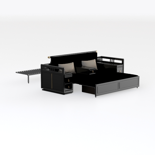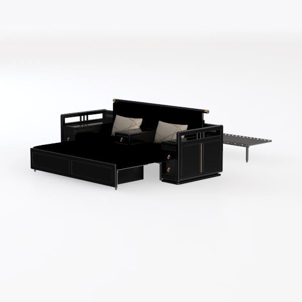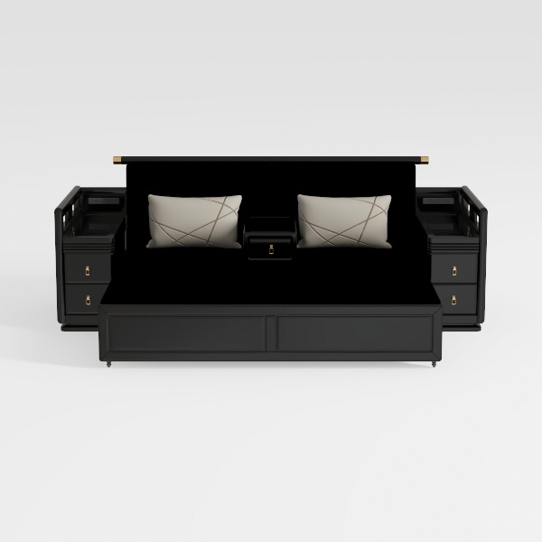 China Furniture and Arts Black Elmwood King Size Chinese Longevity Motif Platform Bed with 6 Drawers