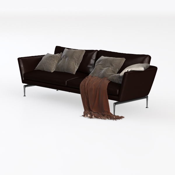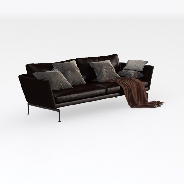 Inspired by contemporary minimalism, this sleek sofa is an exquisite blend of comfort and style. Upholstered in rich, dark fabric, its smooth texture invites you to sink in and relax, while the strategically placed cushions enhance both aesthetic appeal and support. The angular design is complemented by slender metal legs, creating an elegant silhouette that elevates any living space.