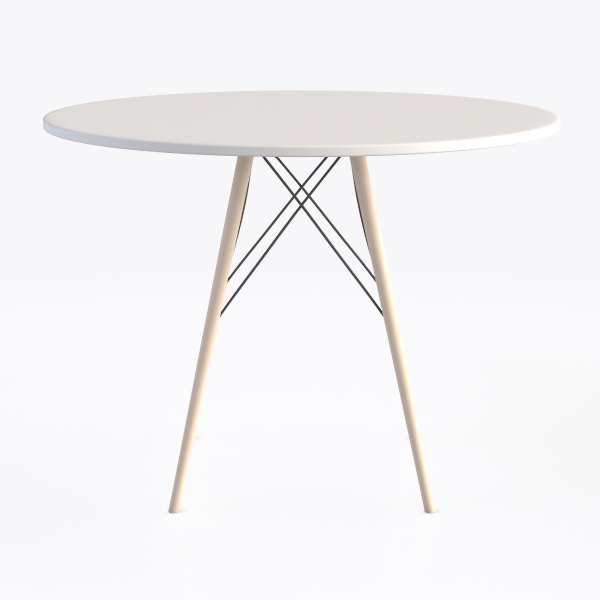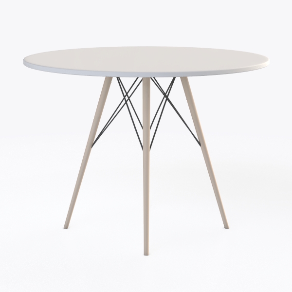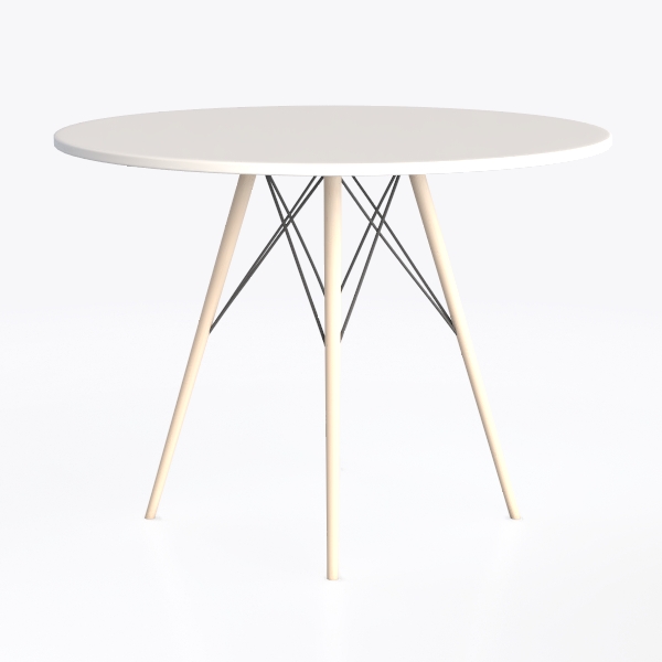 Perfect for modern, Scandinavian, or minimalist interiors, it shines in dining areas paired with upholstered dining chairs in muted pastels or gray, or in living rooms as a centerpiece for a coffee setup, complemented by a low-profile sofa and a potted fiddle-leaf fig. The generous circular surface offers plenty of room for meals, board games, or styling with a stack of design books and a small vase of dried florals, while the slender legs keep the space feeling open and uncluttered—ideal for small apartments or open-concept layouts.