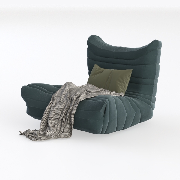 This uniquely designed sofa draws inspiration from modern organic forms, bringing a sense of fluidity and comfort to any space. Its soft, sculptural lines invite relaxation, while the rich, textured fabric offers a tactile quality that enhances the overall aesthetic. The deep teal hue infuses a calming vibe, making it an ideal centerpiece for a contemporary living room.