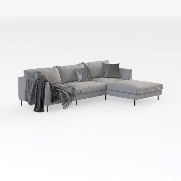Inspired by modern minimalist design, this exquisite sectional sofa effortlessly blends comfort and style. The soft gray upholstery invites you to sink into its plush cushions, offering a warm and inviting feel. Textured throw pillows and a cozy blanket enhance its tactile richness, making it perfect for relaxation.