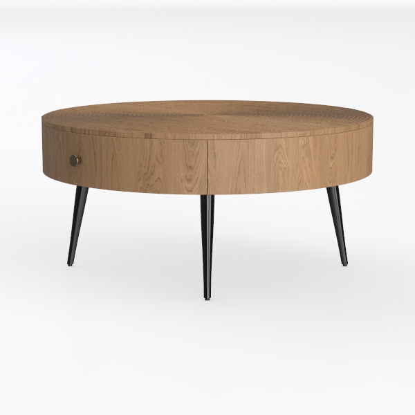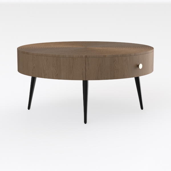 Beneath the tabletop lies a circular drawer, providing discreet storage for remote controls, coasters, or small essentials, keeping the surface clutter-free. Its generous diameter ensures ample space for placing drinks, books, or decorative objects, while the low profile encourages easy movement around the room.