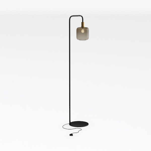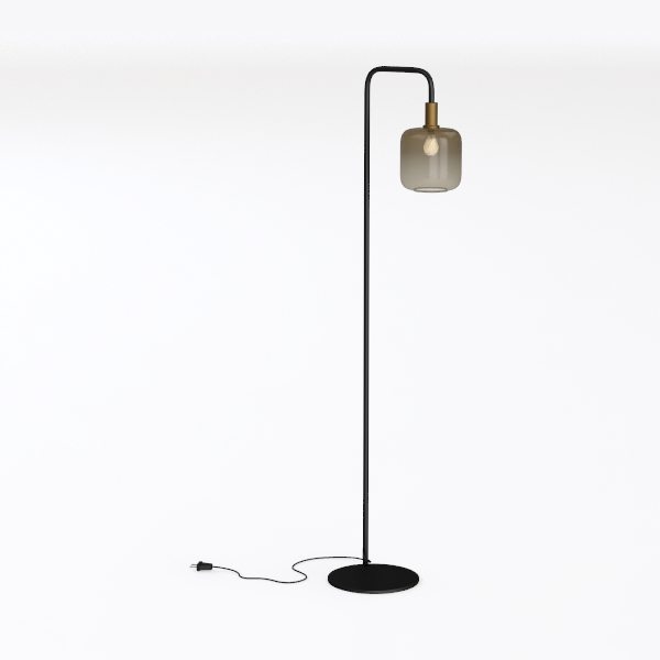 DLLT Floor Lamp Tall for Room: Black Standing Lamp with Amber Glass Lampshade for Living Room - Modern Bright Lamp for Bedroom - Industrial Corner Floor Lamps for Office 8W Led Bulb Included