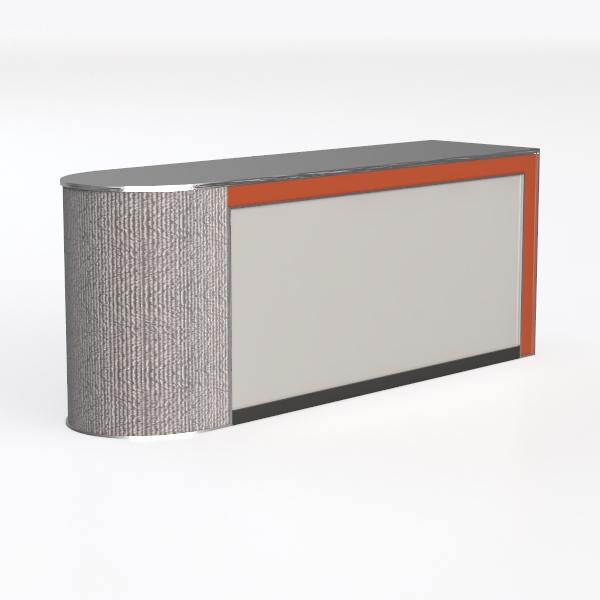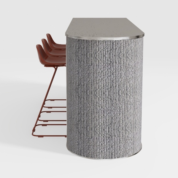 Drawing inspiration from the interplay of raw natural textures and refined modern aesthetics, this freestanding piece merges tactile depth with minimalist elegance. The main structure features a subtly ribbed gray surface that mimics the organic rhythm of weathered stone, catching light to create soft shadows and a sense of quiet depth. Its smooth, polished silver top contrasts sharply with the textured sides, adding a touch of cool sophistication while rounding the edges for a warm, approachable feel.