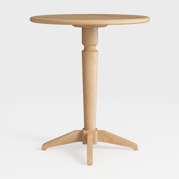 This elegant piece of furniture draws inspiration from the timeless principles of Scandinavian design, blending natural aesthetics with functional simplicity. Crafted from solid wood, its surface reveals the warm, natural grain of the material, while the light, honeyed tone reflects a connection to organic elements. The tabletop, a smooth, rounded circle, sits atop a slender, tapering leg that transitions into a stable, triangular base—each curve and line designed to feel both delicate and grounded. Visually, it exudes a serene, uncluttered charm, with its clean silhouette and subtle texture creating depth without overwhelming a space.