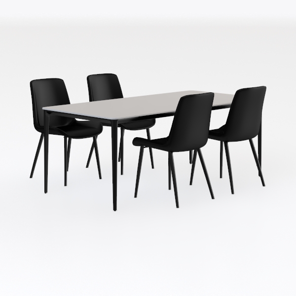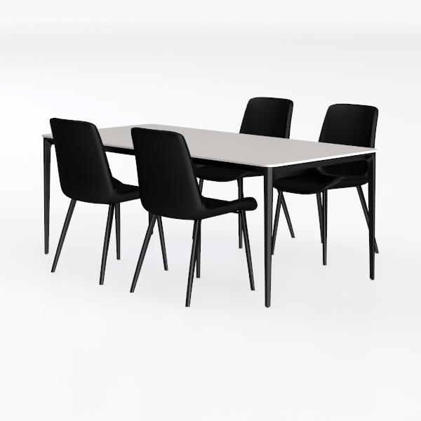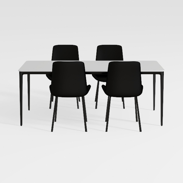 Inspired by the ethos of minimalist design, this dining set draws from a reverence for simplicity and balance, aiming to transform everyday meals into mindful moments. The tabletop, with its smooth, matte surface—crafted to feel cool to the touch and easy to wipe clean—exudes a quiet sophistication, while the sleek black metal legs, thin yet sturdy, create a sense of weightlessness, as if floating above the floor.